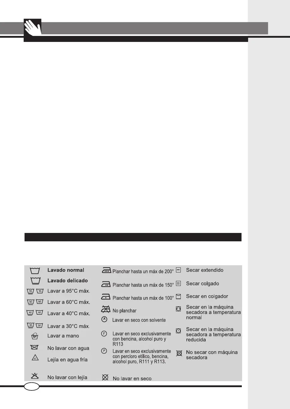 recomienda examinar los símbolos ubicados en las etiquetas del productor. La tabla que se indica a
