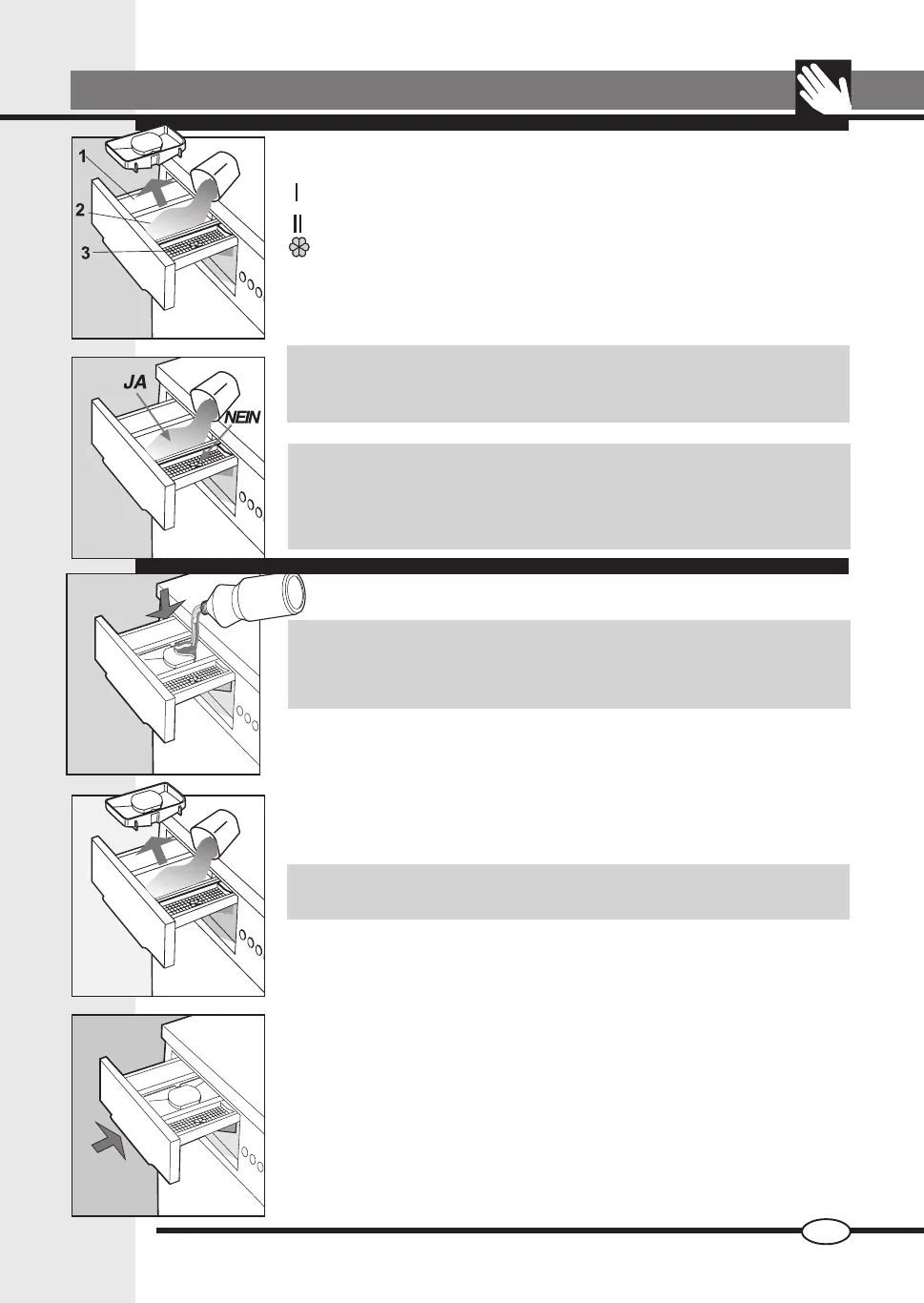Wenn Sie Waschpulver verwenden, daran denken den Behälter wieder herauszu-