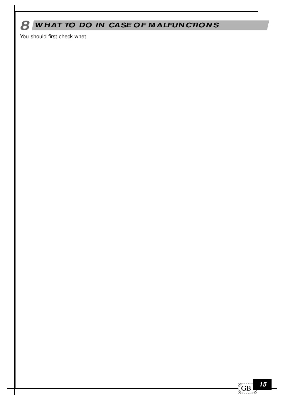 WHAT TO DO IN CASE OF MALFUNCTIONS