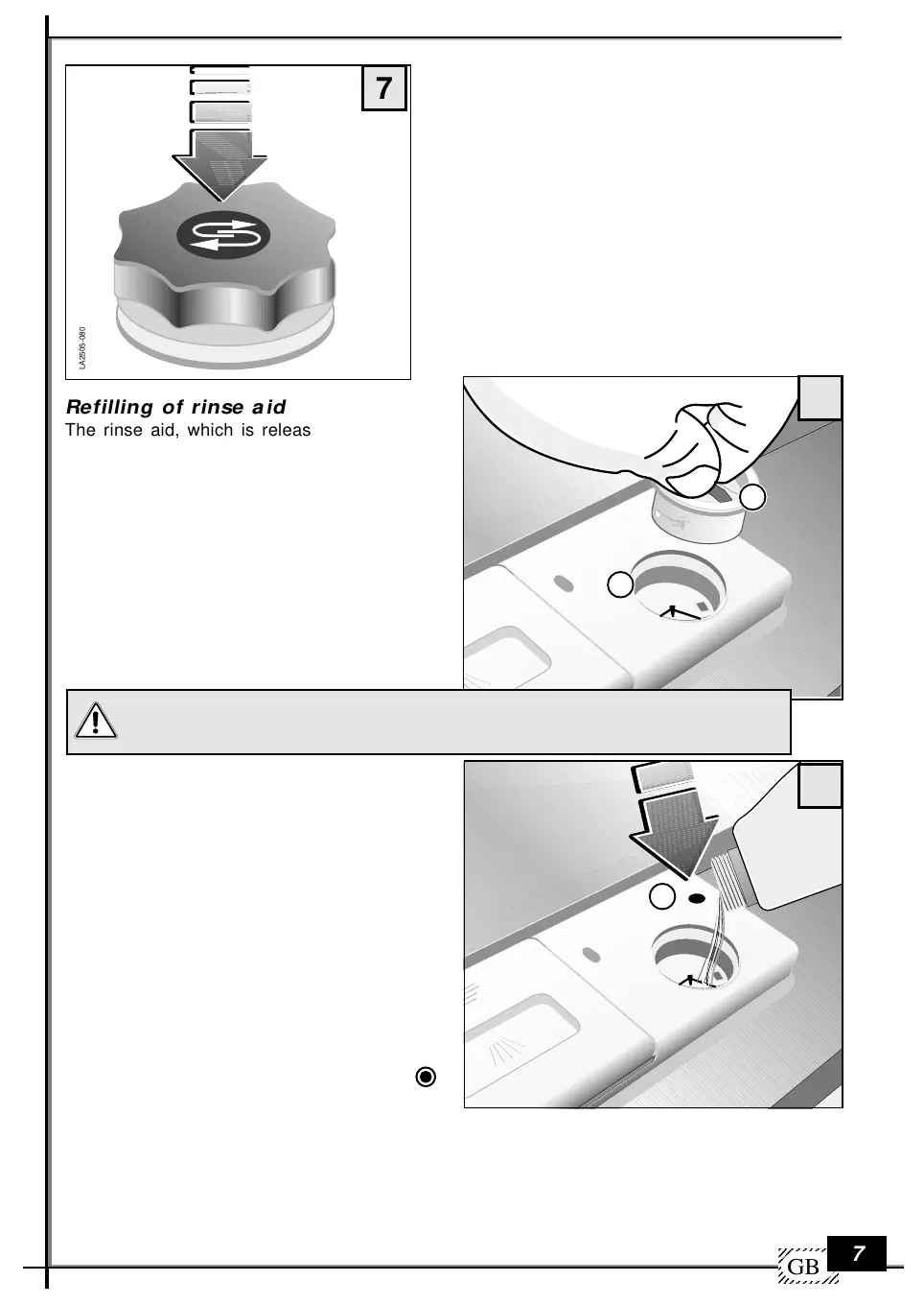 • Fill container with rinse aid up to the broken line.