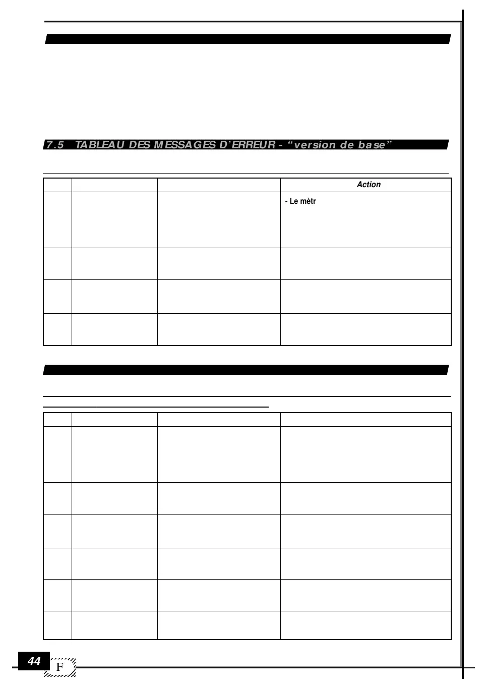 7.5 TABLEAU DES MESSAGES D’ERREUR - “version de base”