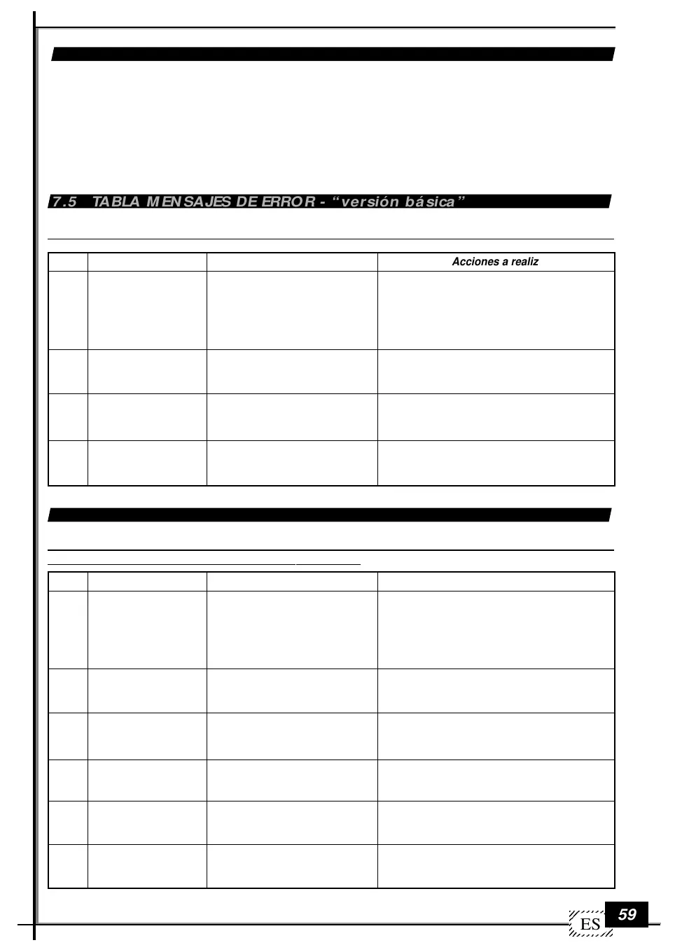7.5 TABLA MENSAJES DE ERROR - “versión básica”