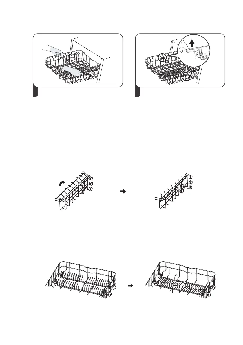 To make room for taller items in the upper basket, raise the cup rack upwards.