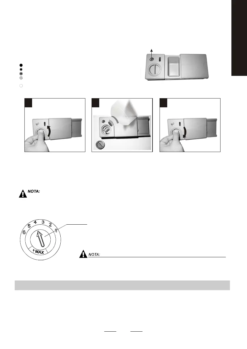 C uando el dosificador de líqu ido a brillantad or e stá ll eno, el indicad or adquir irá u n col or o scuro . P or el co ntra rio,