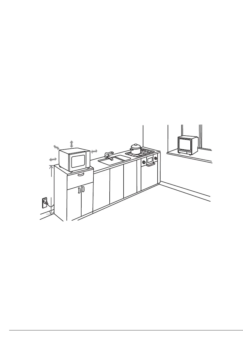 (4) Coloque el horno tan lejos como sea posible de radios y televisores. El funcionamiento del horno