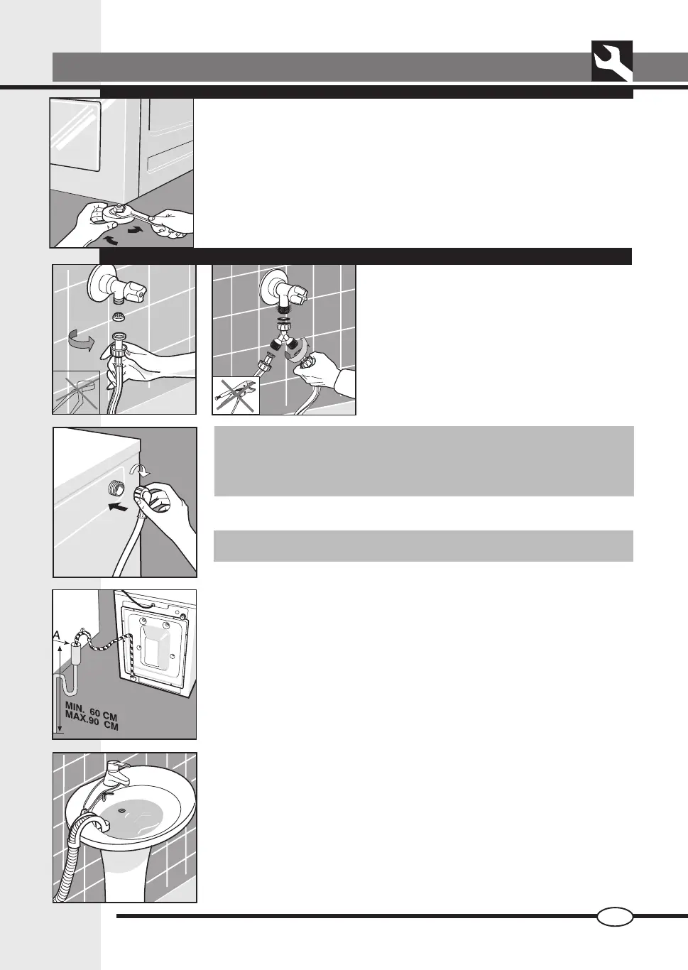 ▼ Wasserschlauch an die Waschmaschine anflanschen (fig. 9).