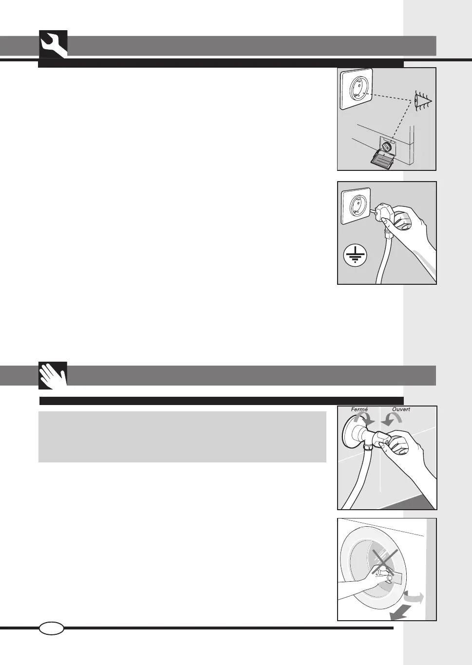 ▼ avec les mains parfaitement sèches, introduire la fiche dans la prise de cou-