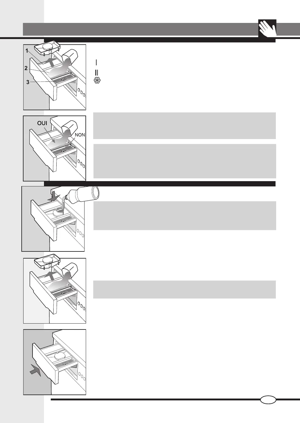 SI LE MODÈLE PRÉVOIT LE RÉCIPIENT POUR LE DÉTERGENT LIQUIDE