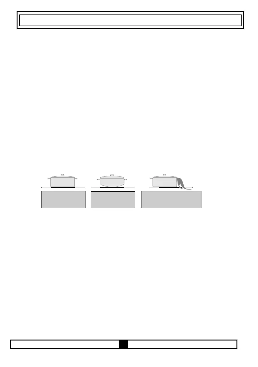 · Los utensilios de cocina deben colocarse centrados en el hornillo. Si no se colocan correctamente,