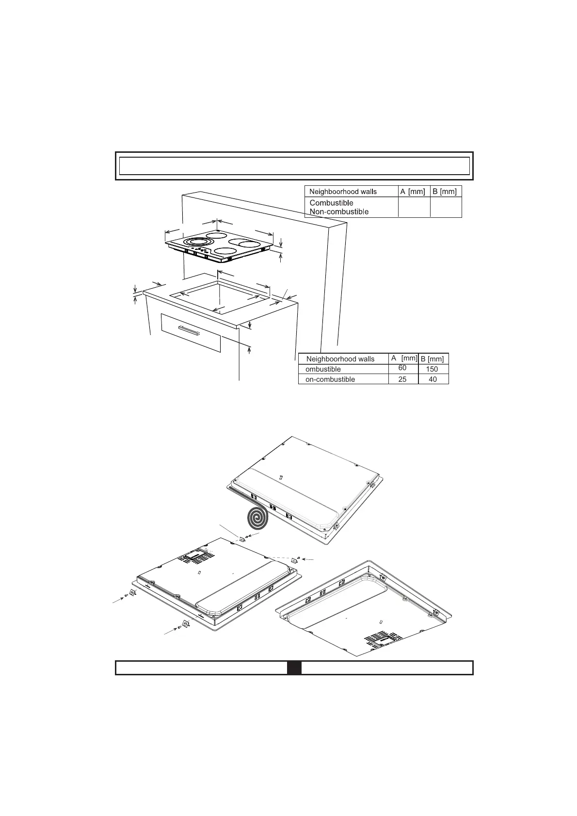 · Screw the 4 worktop mounting brackets on the side walls of product.