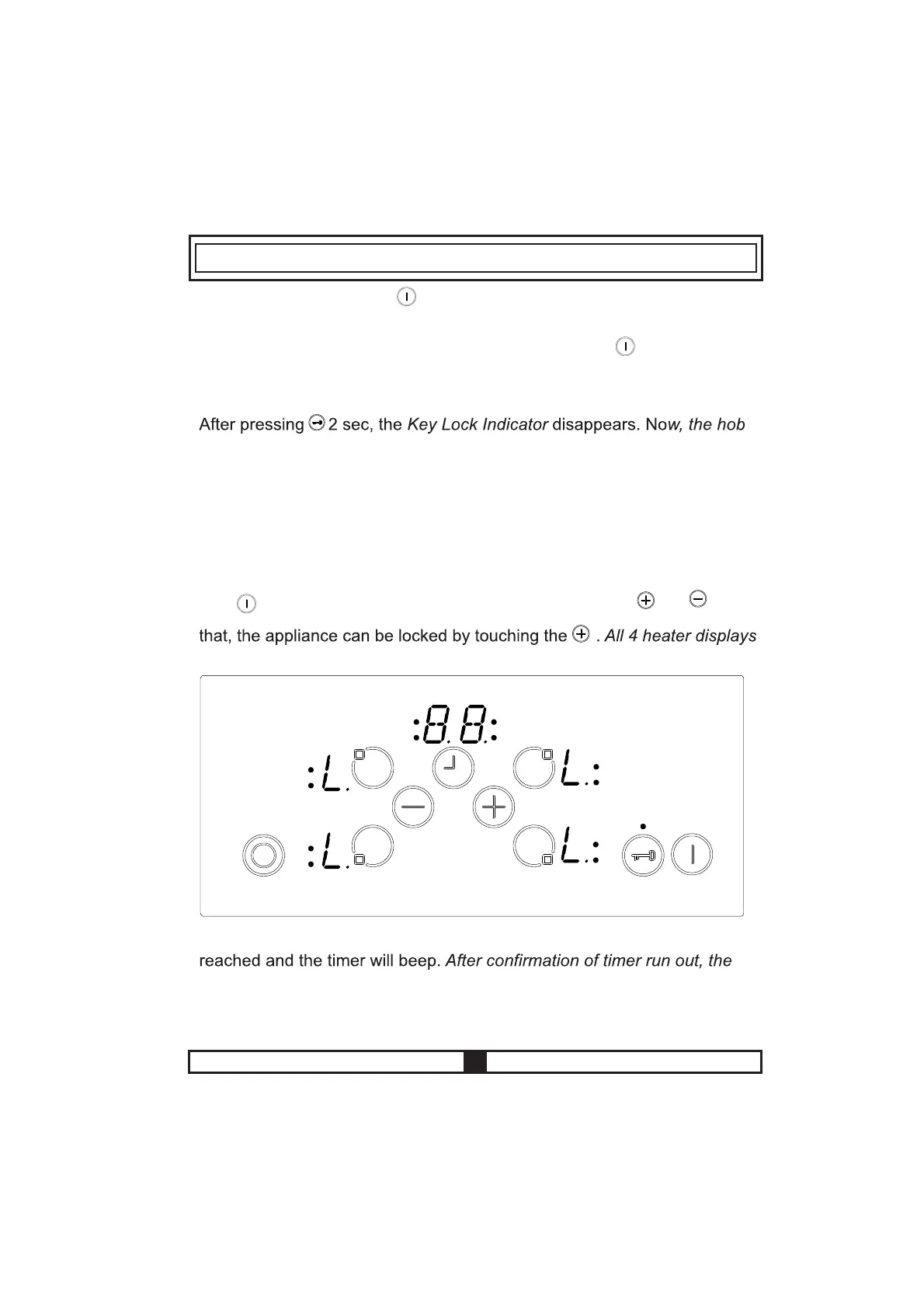 If the heater is locked, only can be operated, all other buttons are blocked.