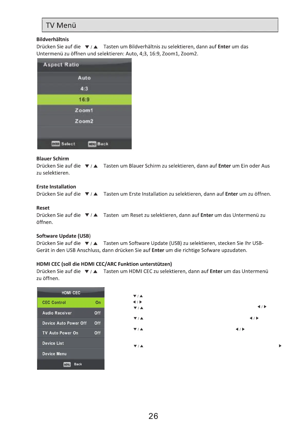 Drücken sie , um "tv anlassen" zu wählen, und die taste , um "tv anlassen"