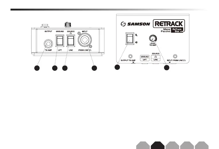 3. LEVEL TO AMP – Bouton rotatif de volume pour régler le niveau envoyé à l’ampli.