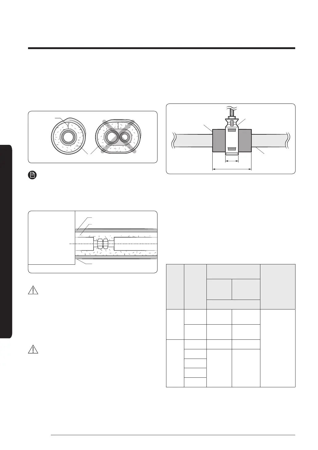• Insulate the gas side and liquid side pipe, noting the