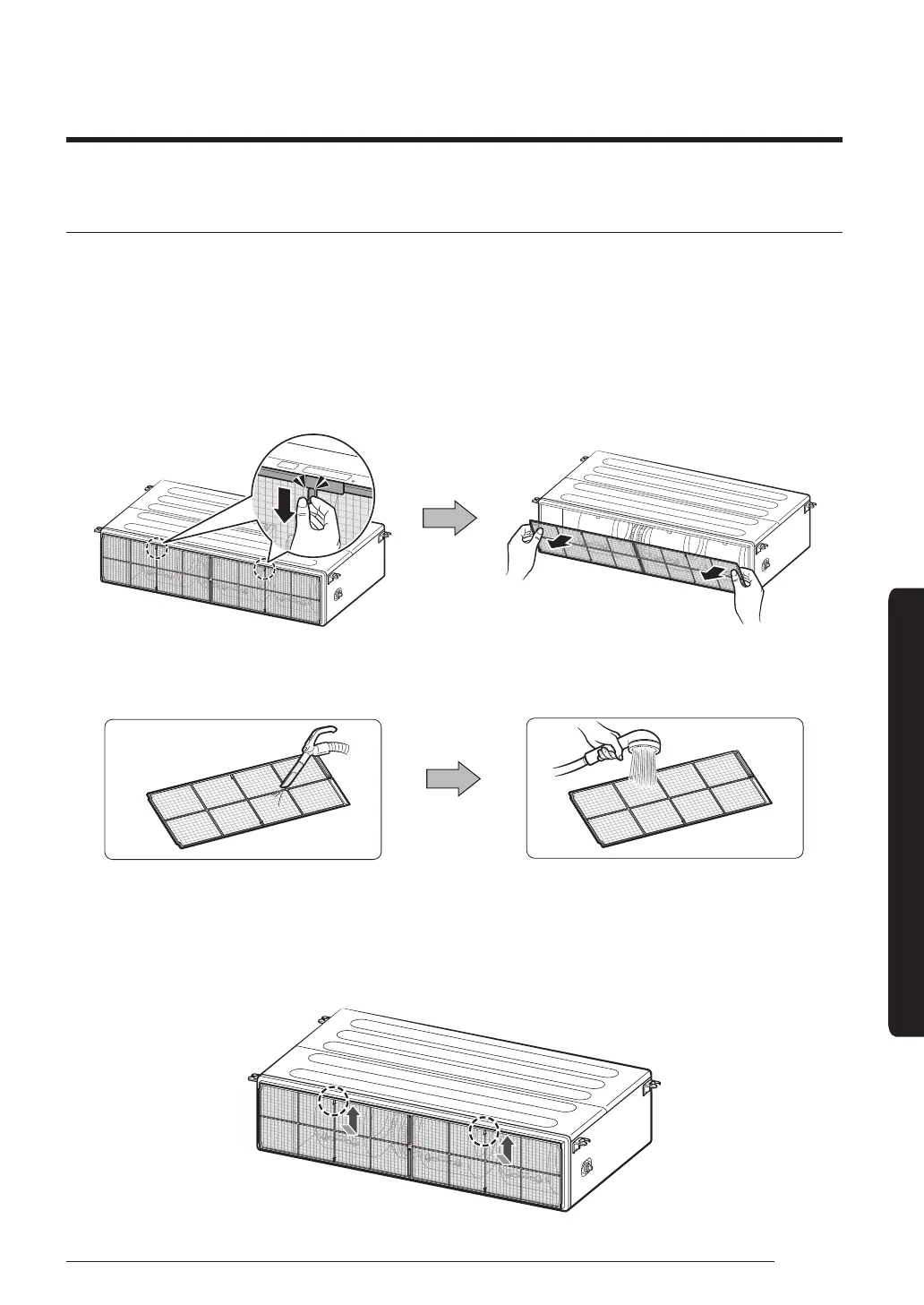 2. Clean the Air lter with a vacuum cleaner or soft brush. If dust is too heavy, then rinse it with running
