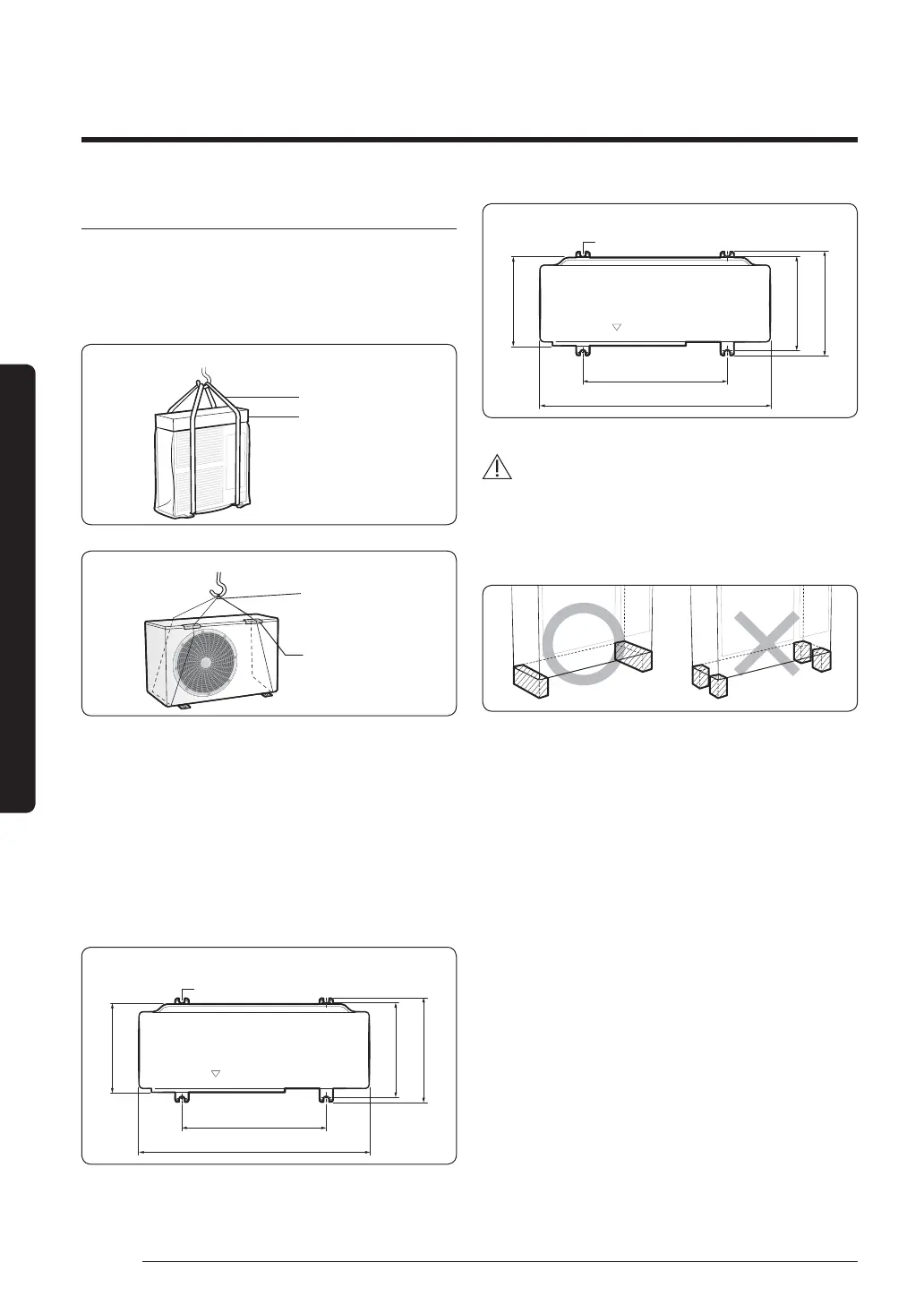 1 Before carrying the outdoor unit, fasten two wire ropes