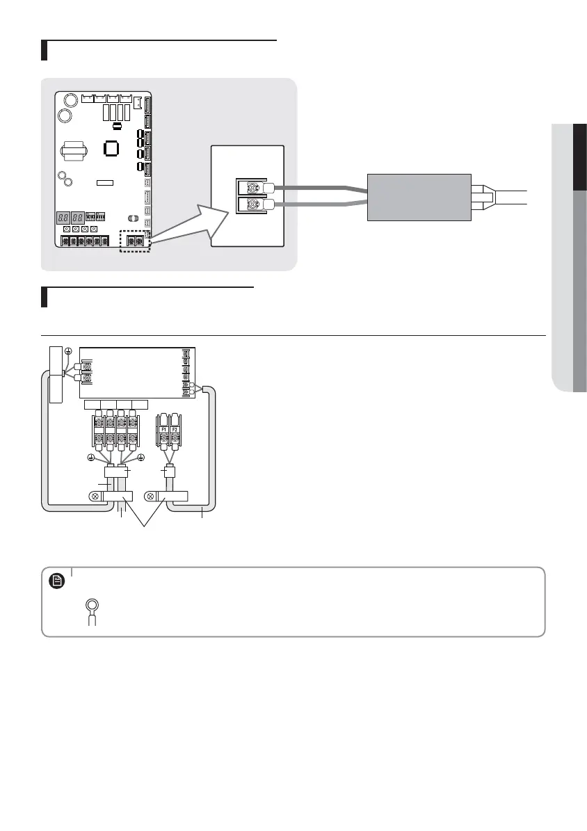 • Ground wire for the indoor unit and outdoor unit connection cable must be clamped to a soft copper