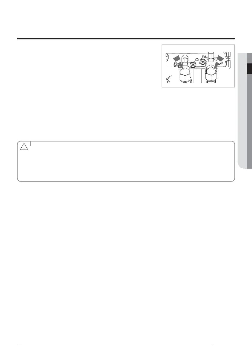 f At this time, especially check for gas leakage from the 3-way valve’s stem