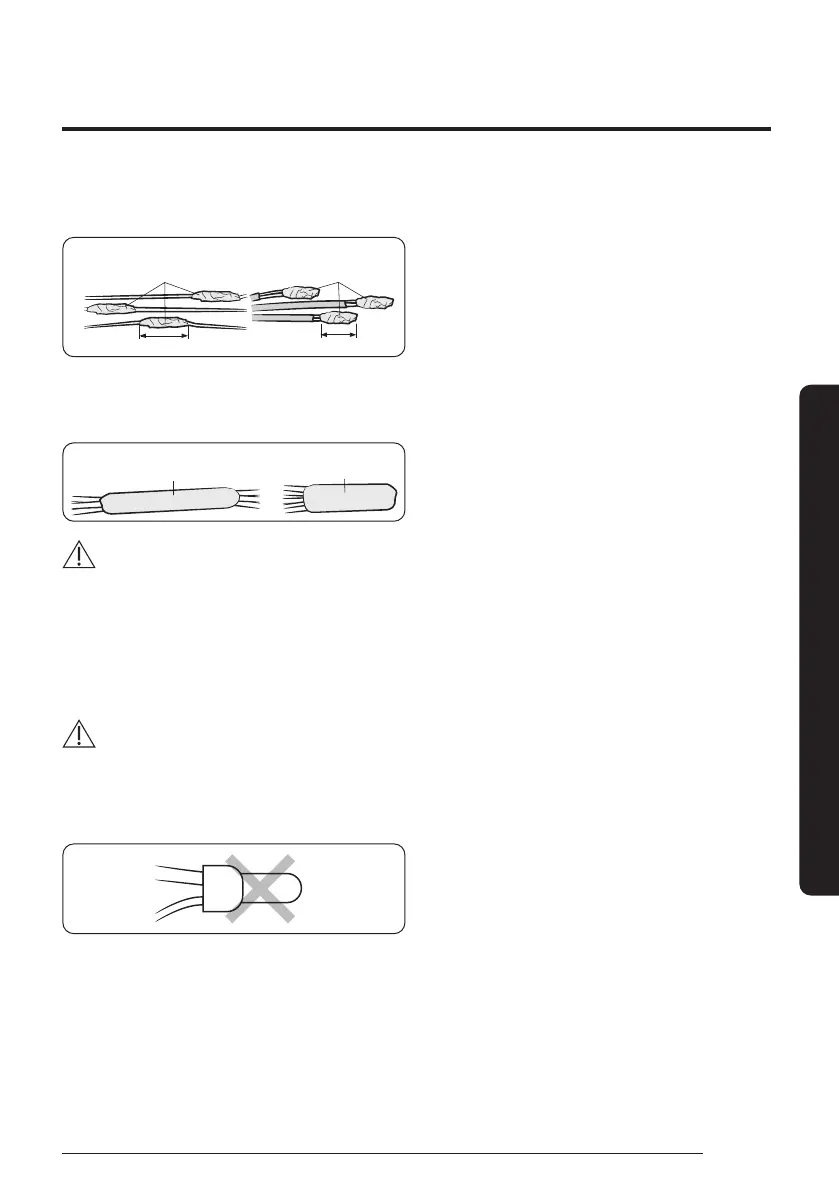 • Be sure to use insulation tape and a contraction tube