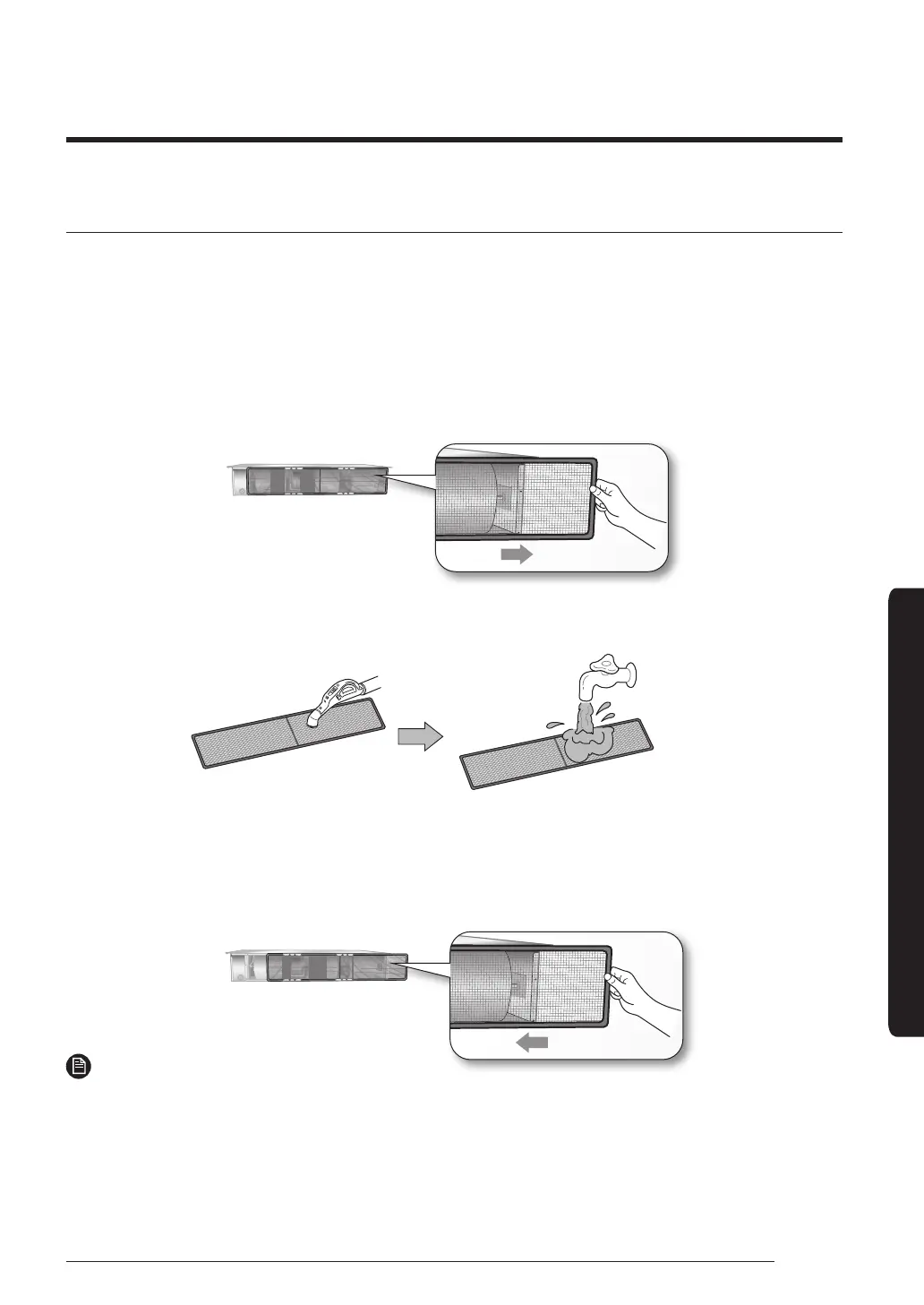 • After cleaning the filter, press the Filter Reset button on the remote control for 2 seconds to reset the filler