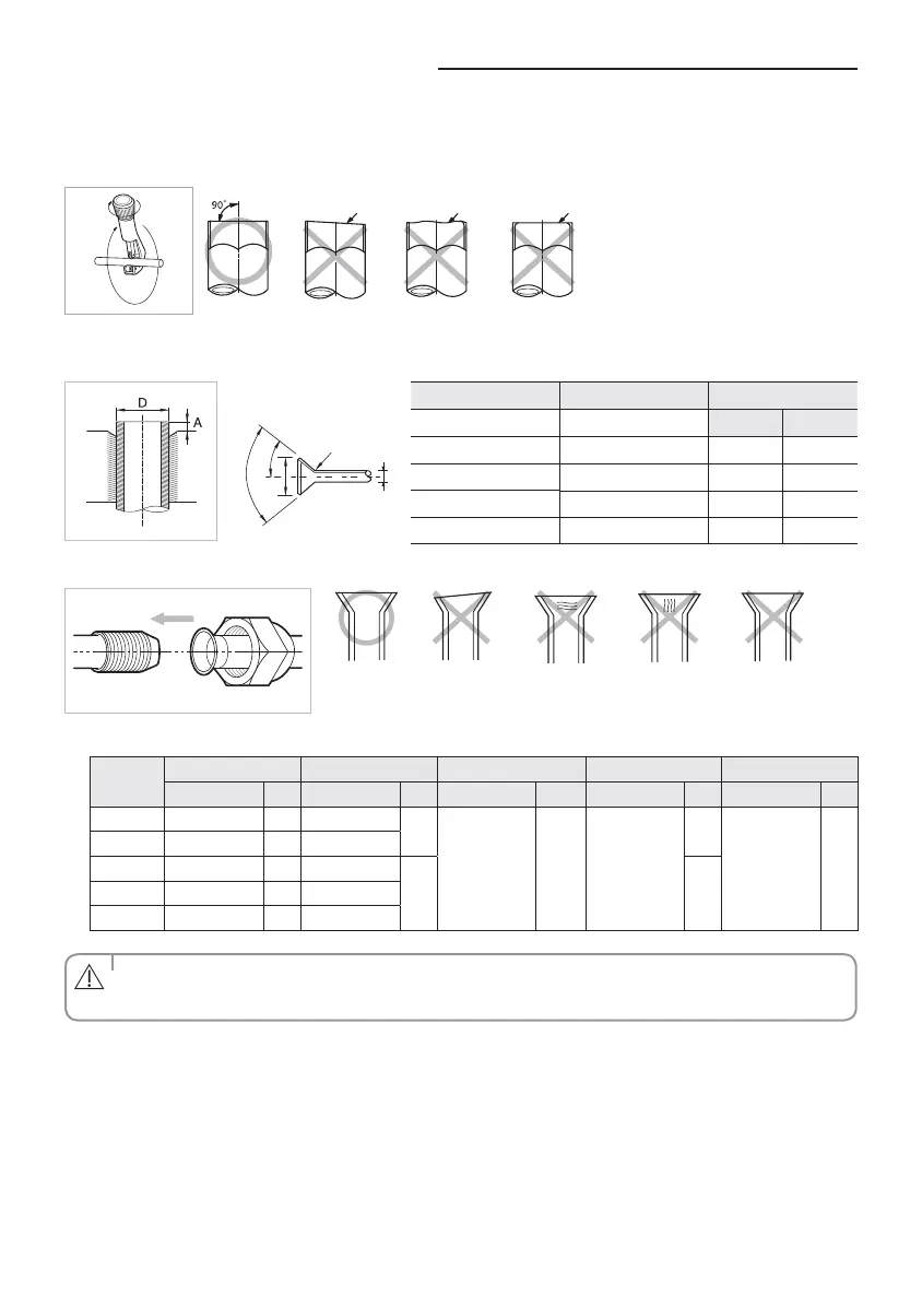 with the side of the pipe. Refer to the illustrations below for examples of edges cut correctly and incorrectly.