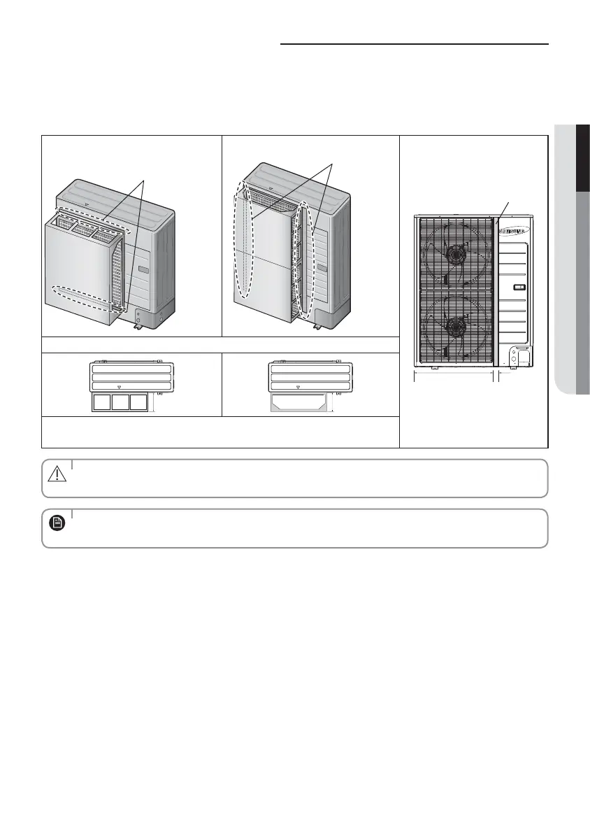 • Install outdoor units with the back surface facing wall side to eliminate the eects of external wind.