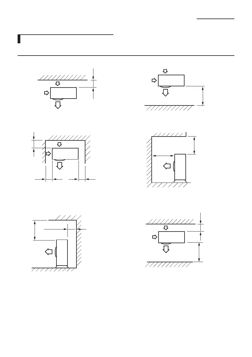 When 3 sides of the outdoor unit are blocked by a wall The upper part of the outdoor unit and the air outlet is