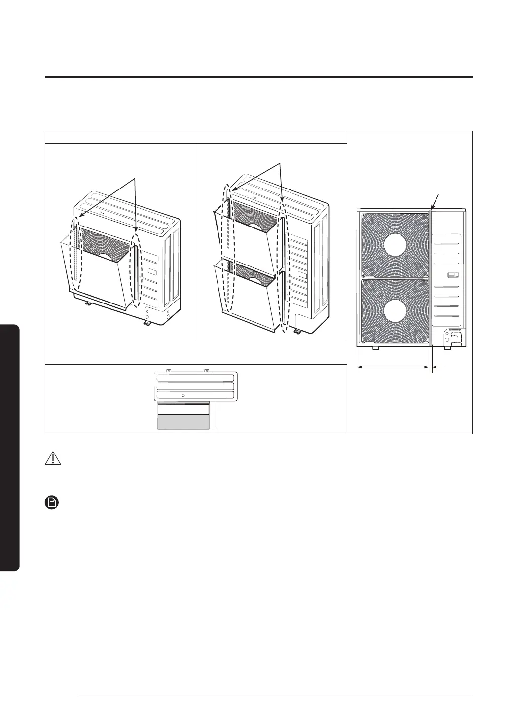 • Install outdoor units with the back surface facing wall side to eliminate the effects of external wind.