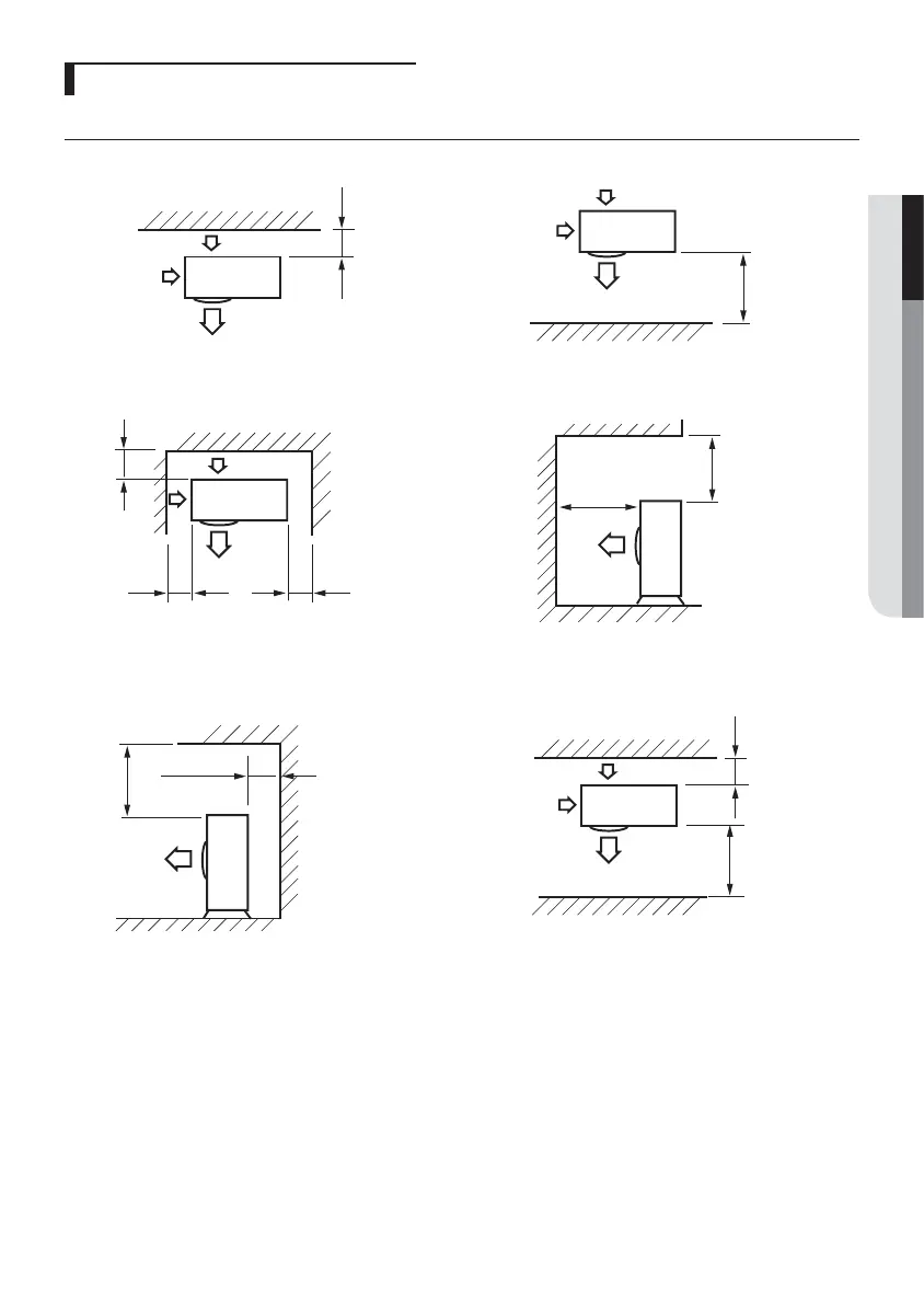 ❋ When 3 sides of the outdoor unit are blocked by a wall ❋ The upper part of the outdoor unit and the air outlet is