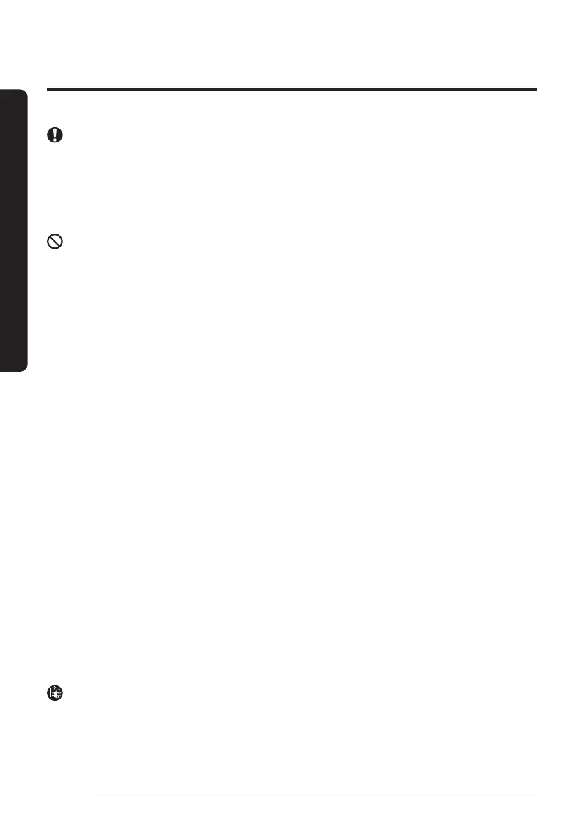 • Failing to do so may result in problems with the product, water leakage, electric shock, or fire.