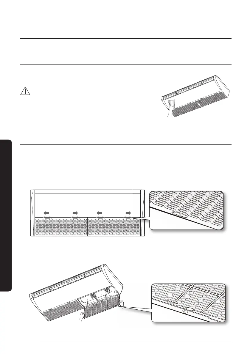 Slide the both hooks and unscrew two screws by screw driver from both of front grille.