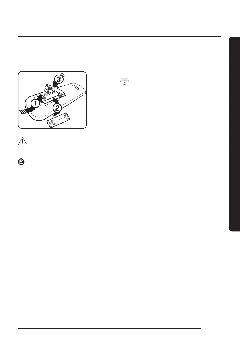 1 Open the battery cover of the remote controller.