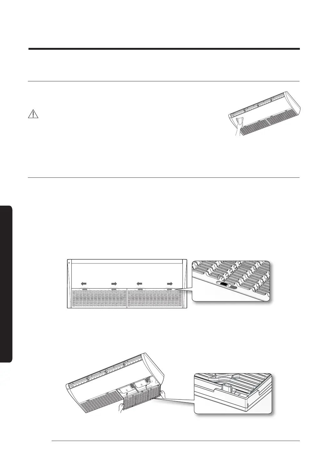 Slide the both hooks and unscrew two screws by screw driver from both of front grille.