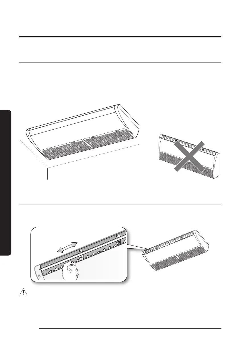 • Be extremely careful with your fingers while adjusting the Horizontal air flow direction. There is a