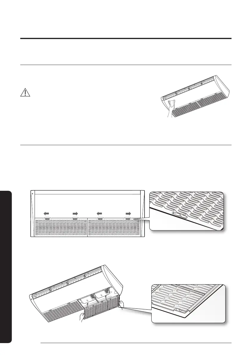 Slide the both hooks and unscrew two screws by screw driver from both of front grille.