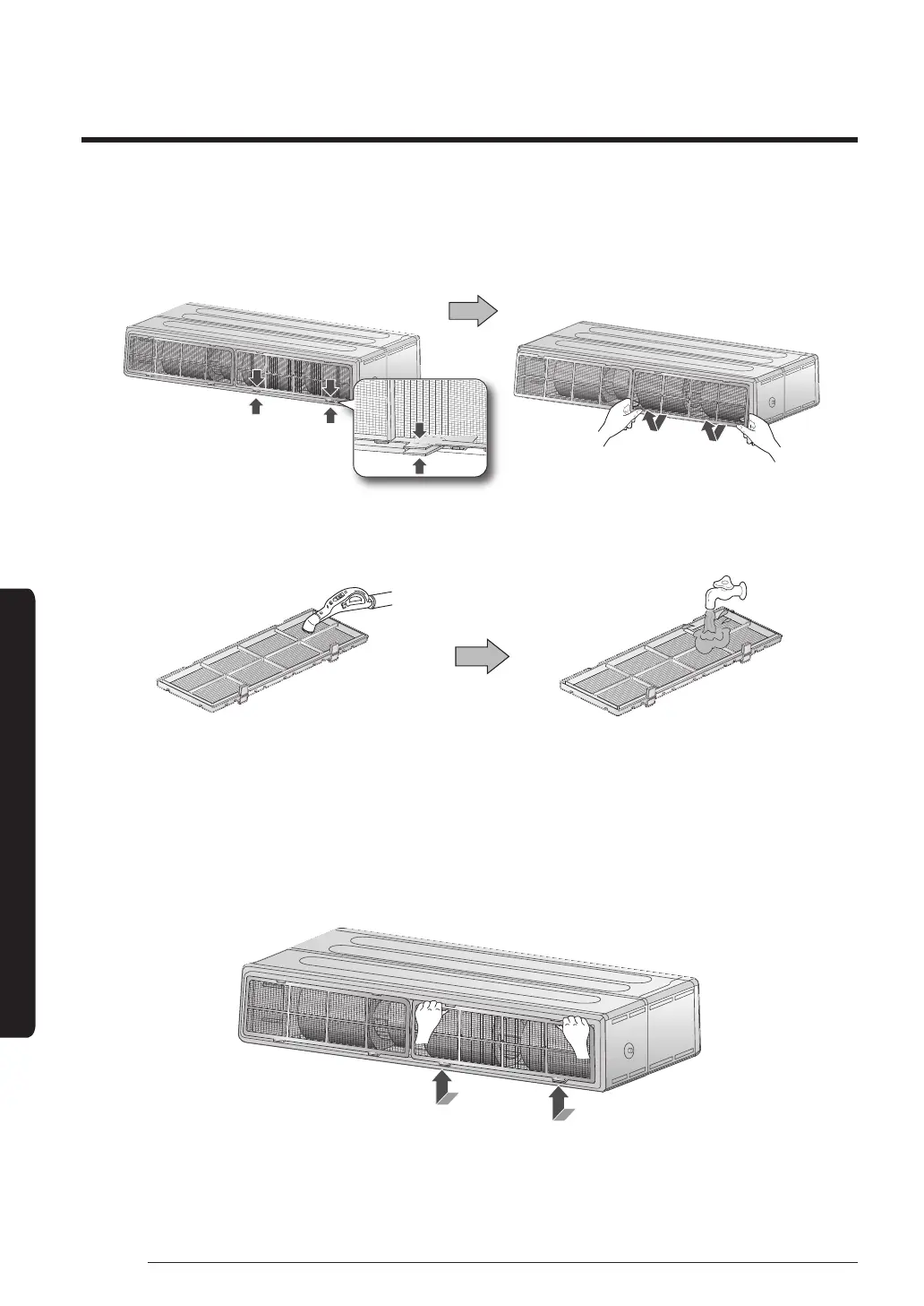 2. Clean the Air lter with a vacuum cleaner or soft brush. If dust is too heavy, then rinse it with running