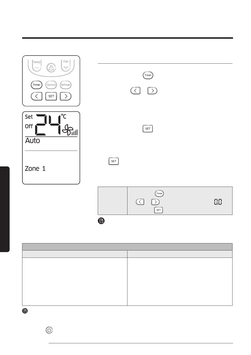 • Wanneer de On timer en de Off timer zijn ingesteld, kan de instelling worden geannuleerd door