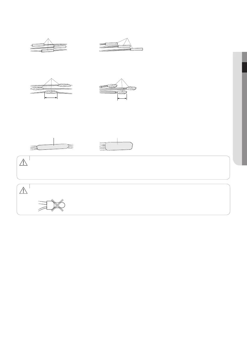 • Be sure to use insulation tape and a contraction tube made of approved reinforced insulating materials that have