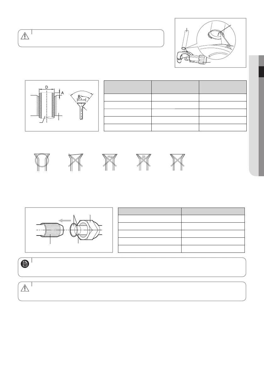 3. To prevent a gas leak, remove all burrs at the cut edge of the pipe with a reamer.