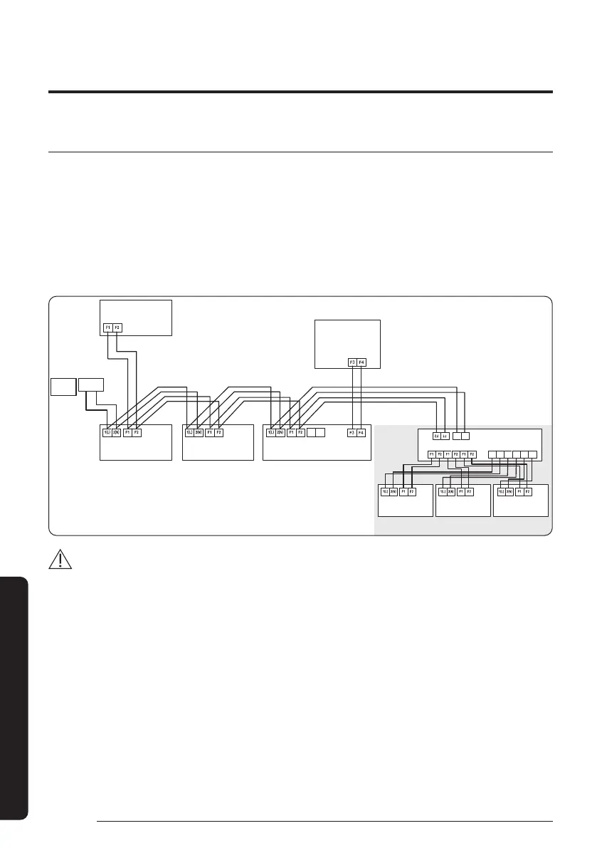 4 Connect the power cable{1(L), 2(N)} among the units within maximum length and communication cable(F1, F2) each.