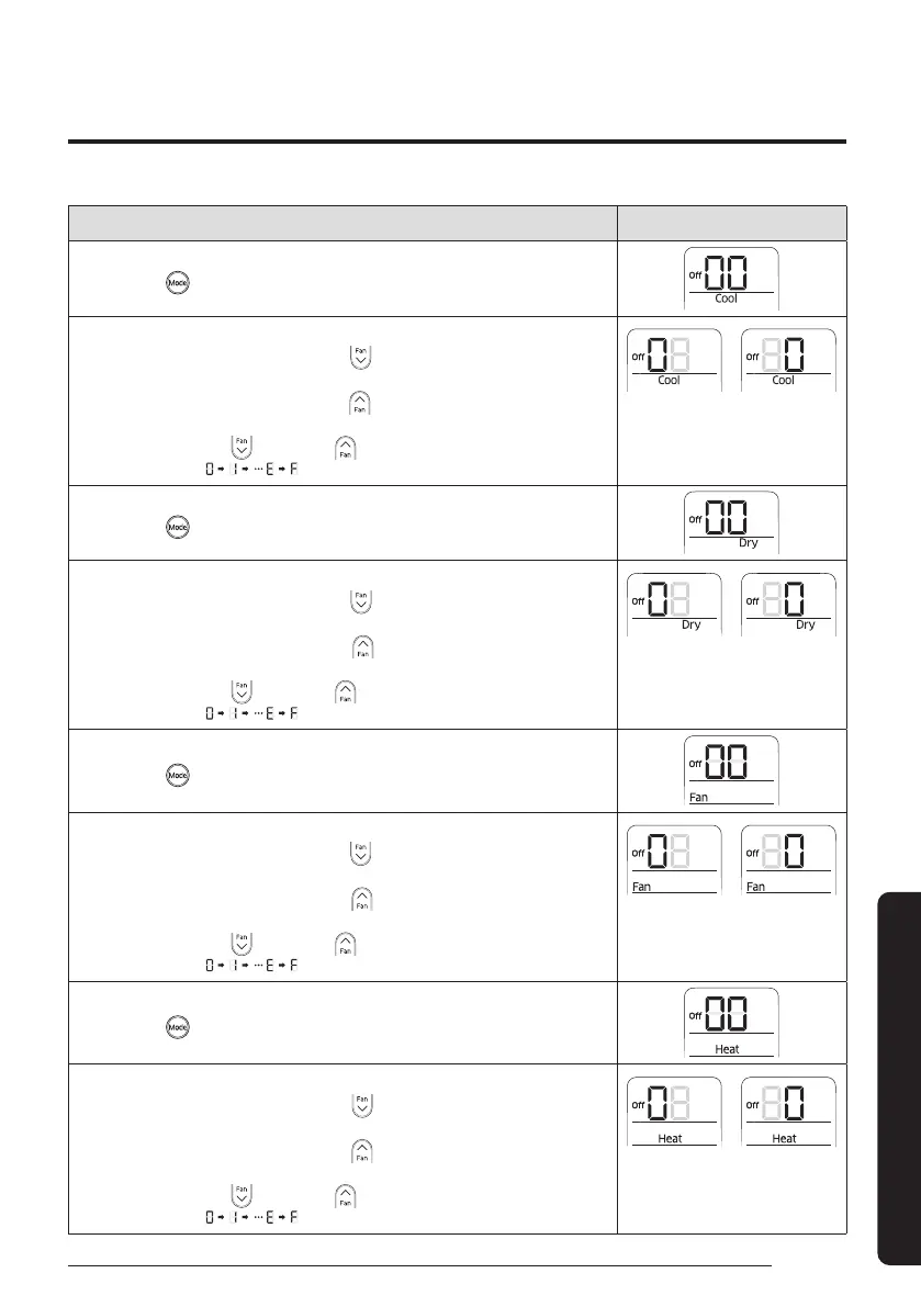 16 Press the (Mode) button. Fan and Off appear on the remote control display.