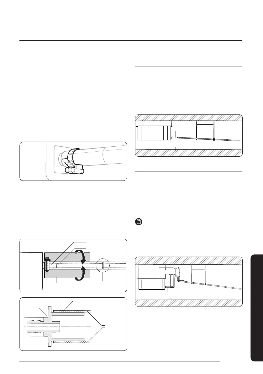 – Install the gas side and liquid side pipes, leave