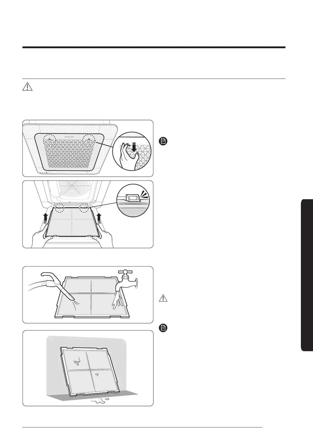 • Be sure to hold the grille with a hand to prevent dropping from the opening of the front grille.