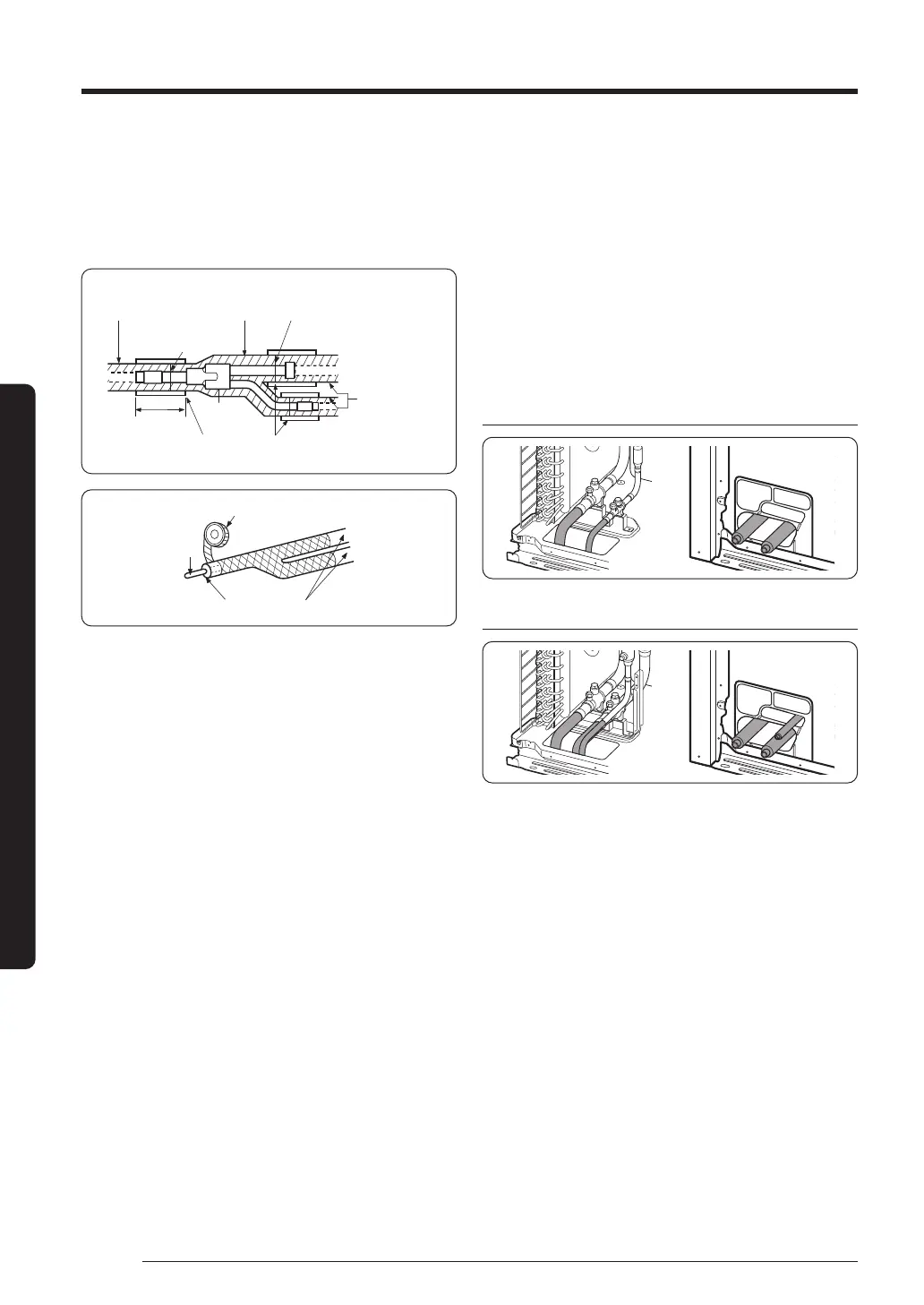 • Seal the gap between the outdoor unit pipe and the insulator.