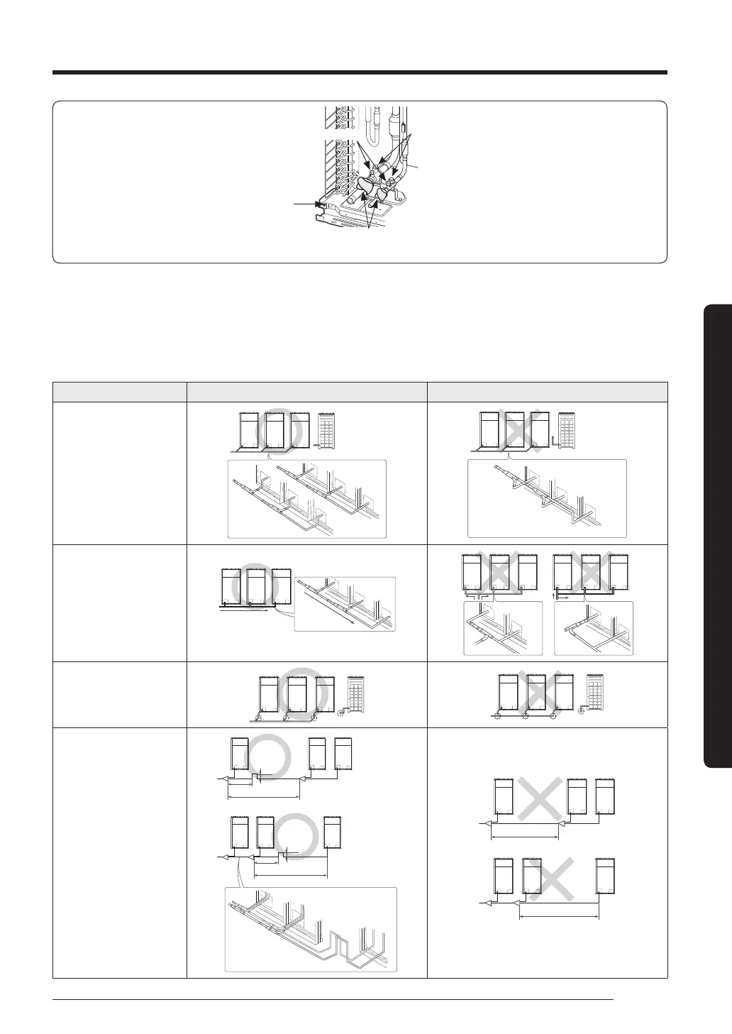 • Height of the connection pipe should be same or lower than the ones connected to the outdoor units.