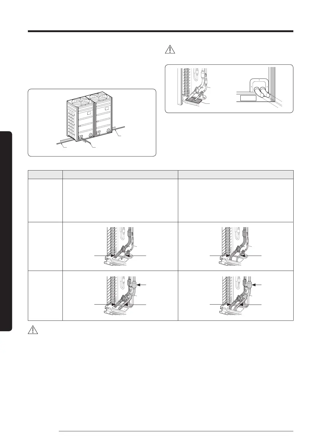 – Zorg ervoor dat verbonden pijpen elkaar niet onderbreken of contact maken met het product. (Trillingen kunnen schade bij de