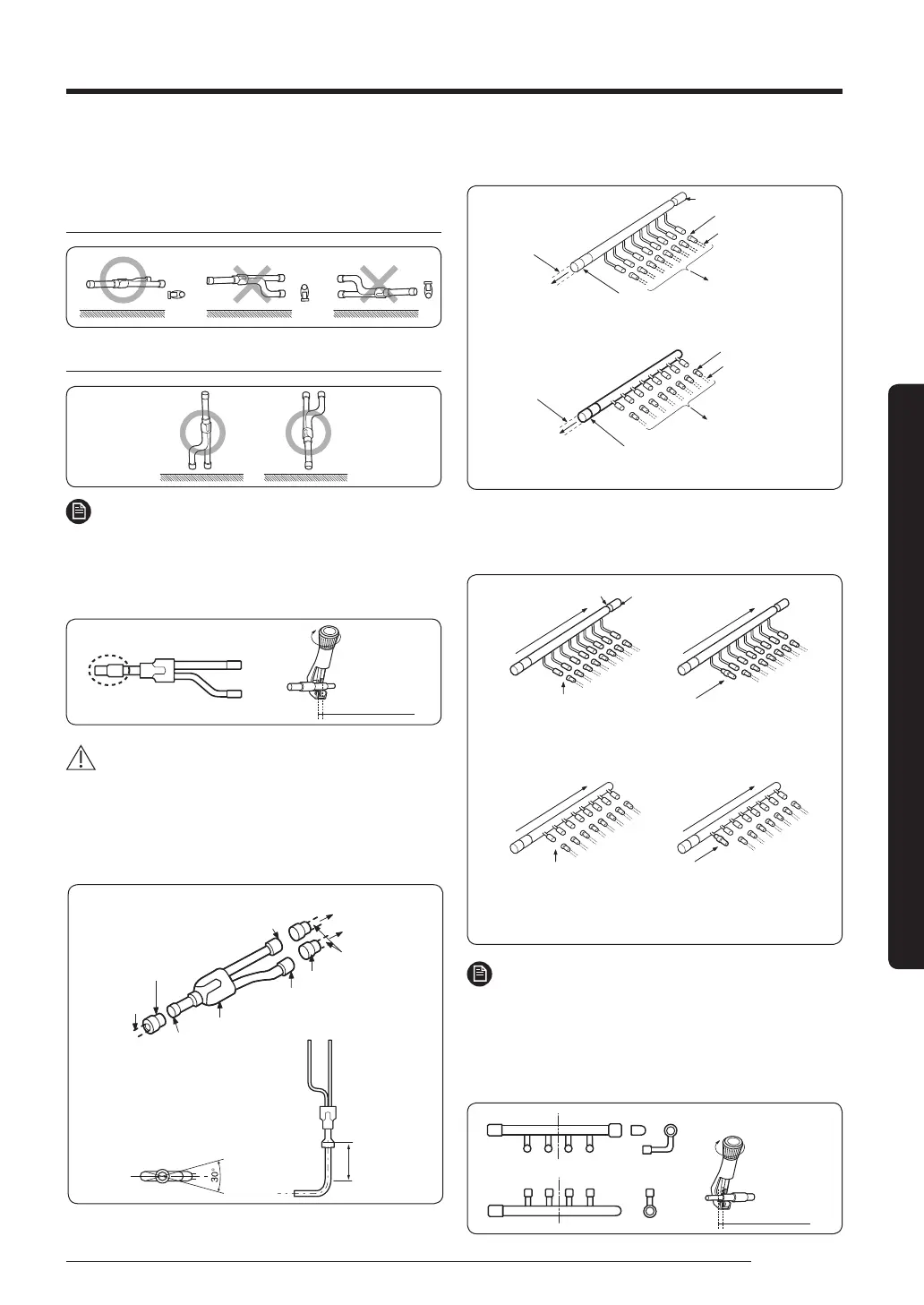 De verbindingen van de aftakkingen moeten ‘horizontaal’ of ‘verticaal’
