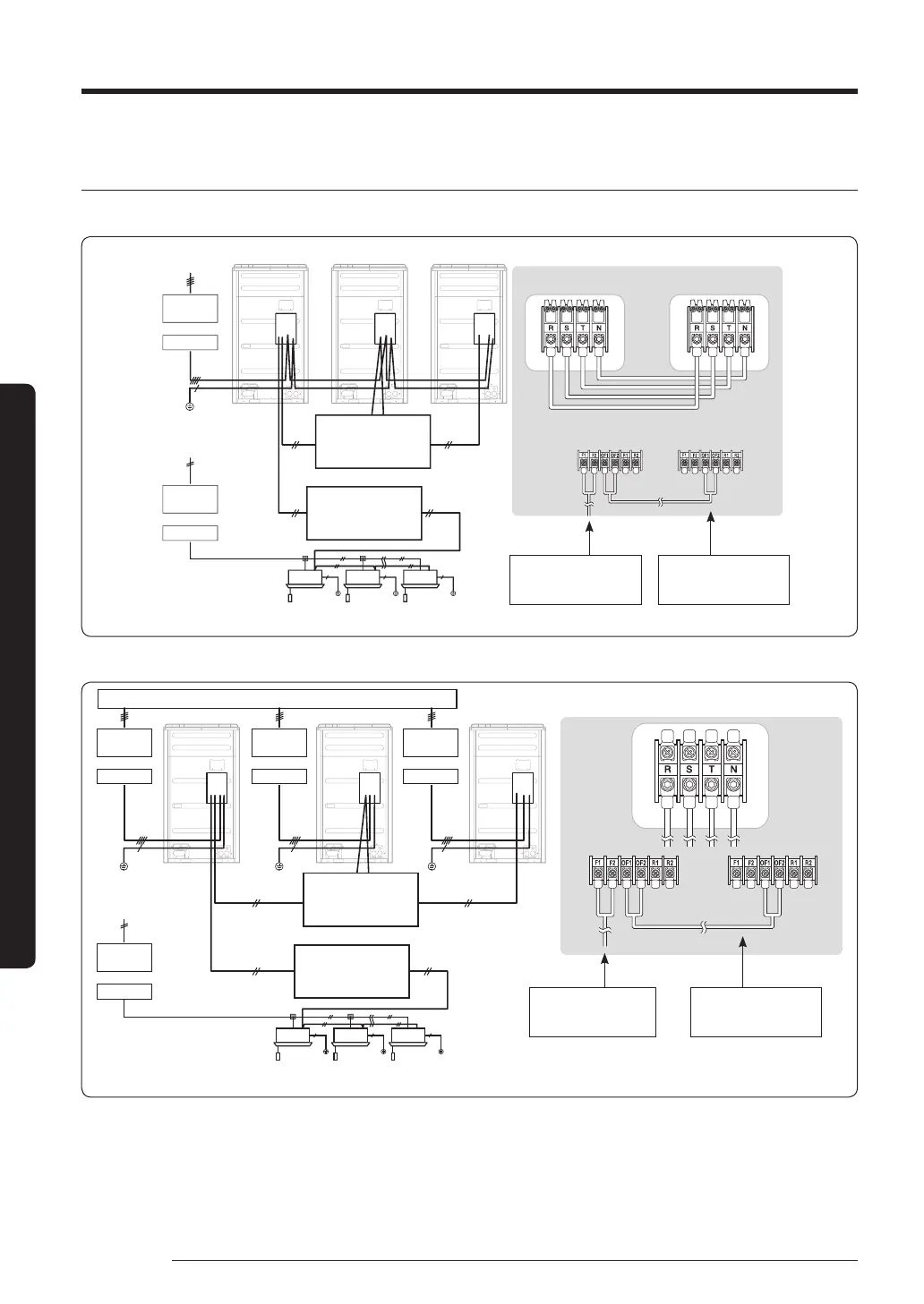 • De communicatiekabel tussen de binnen- en buiteneenheden en de communicatiekabel tussen buiteneenheden hebben geen