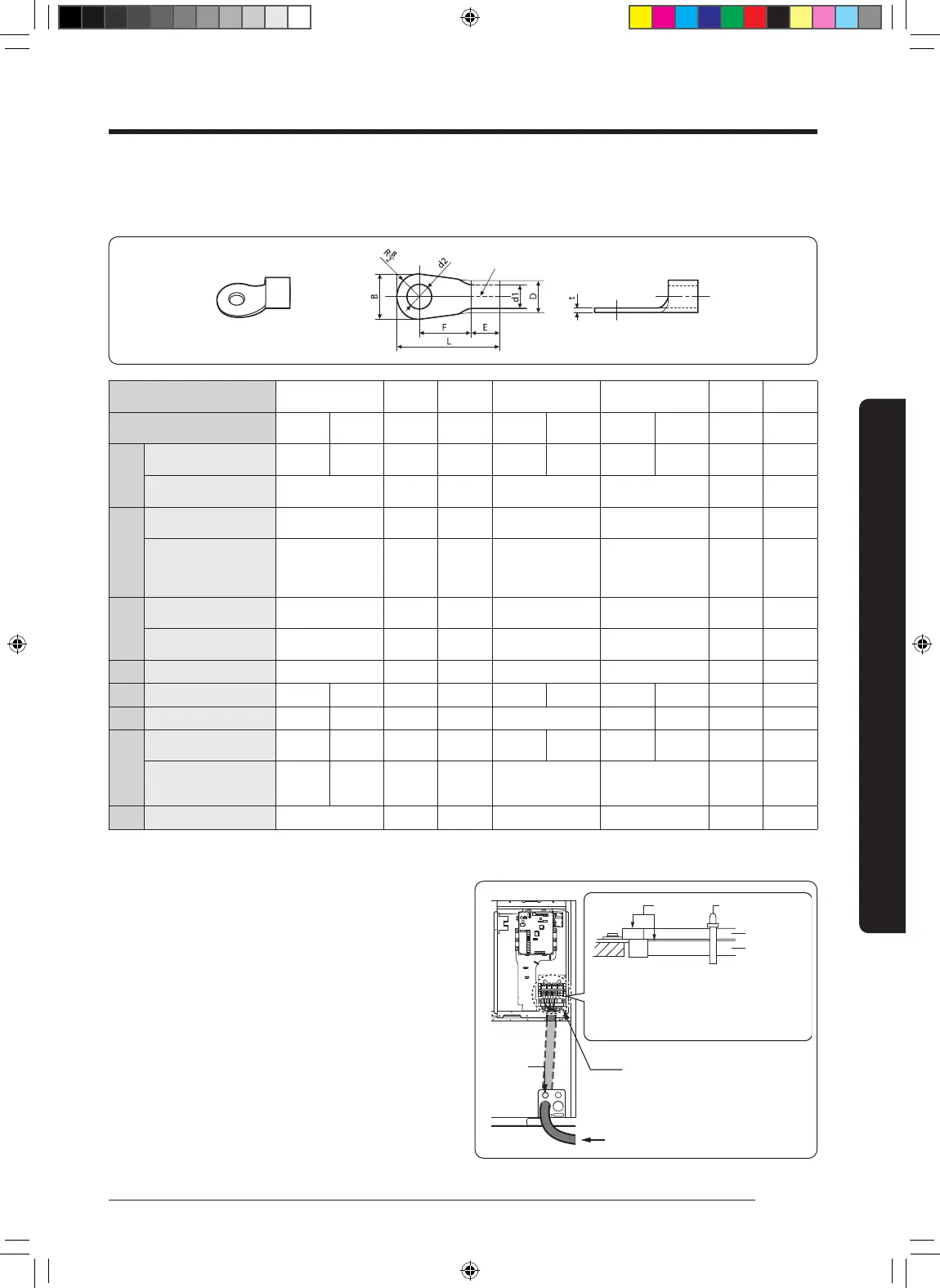 • Select a solderless ring terminal for a power cable according to the nominal dimensions for cable.