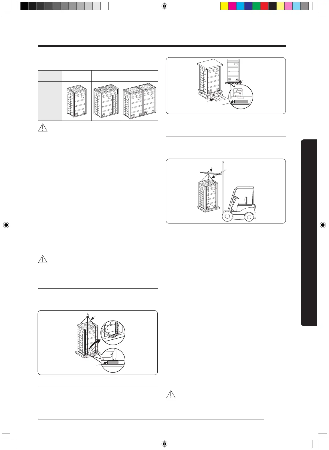 • Hang the wire rope to the forklift fork to move the outdoor unit.